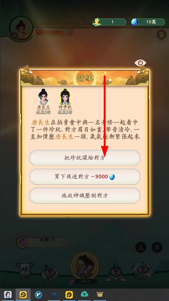 2、在拍卖会的情缘事件中,选择把珍玩让给对方可触发相应的剧情发展,这种选择可能影响角色之间关系。