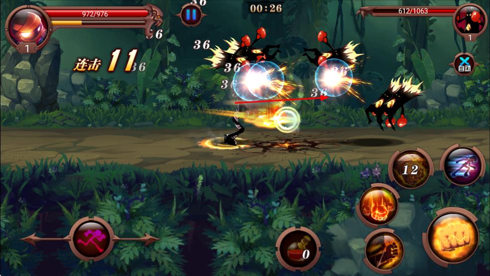 2、游戏中途,可挑战关卡闯关、魔能塔林等模块,在战斗中灵活调整技能释放方向,开发新连招;同时招募更多人物,组建专属火柴人部队。