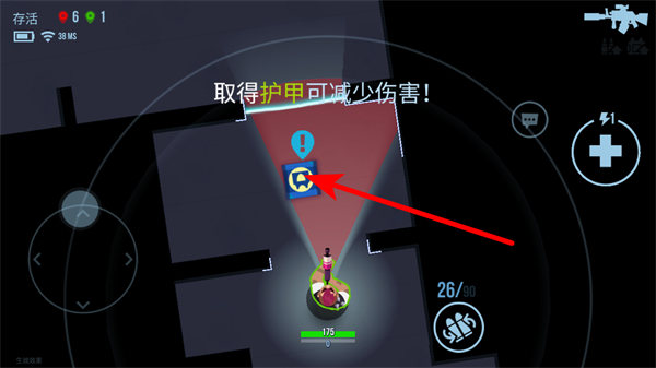 2、在游戏中取得护甲可减少伤害,需及时拾取护甲道具。