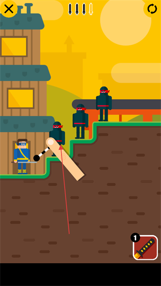 1、观察忍者和敌人站位,调整飞削角度,瞄准敌人。
