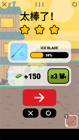 4、成功通关,获得三星评价和金币奖励,点击箭头按钮进入下一关。