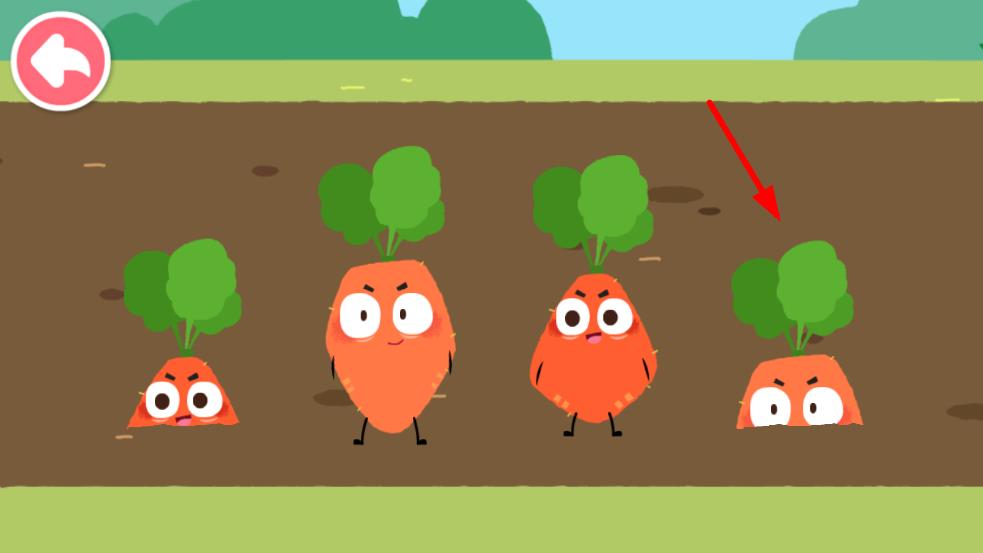 2、在游戏过程中,会出现种植有胡萝卜的田地场景,按照游戏提示,点击成熟的胡萝卜,进行收获操作。