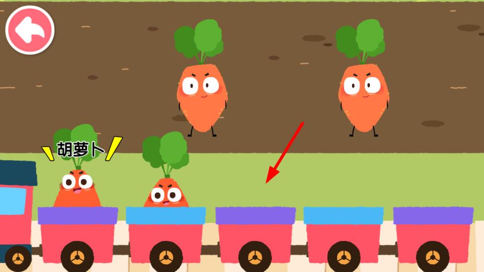 3、收获后的胡萝卜需要放置到运输的小火车车厢里,点击相应位置,将胡萝卜装车。