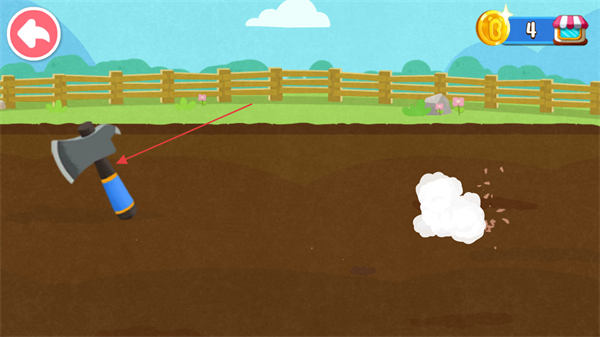 3、使用斧头工具清理种植区域障碍,为种植作物腾出空间,推进流程。