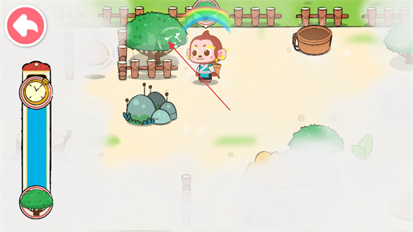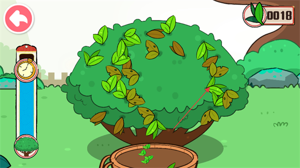 4、点击茶树上的茶叶,将其采集到木桶中,积累采茶数量。
