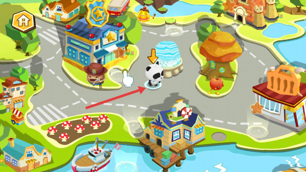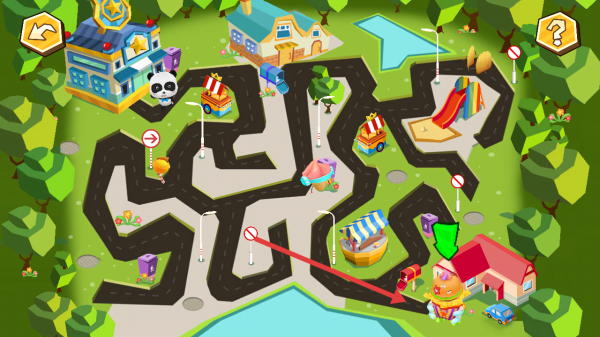 1、点击迷宫小镇Labyrinth town启动页播放按钮,进入卡通地图界面,操控熊猫角色,开启小镇探索。