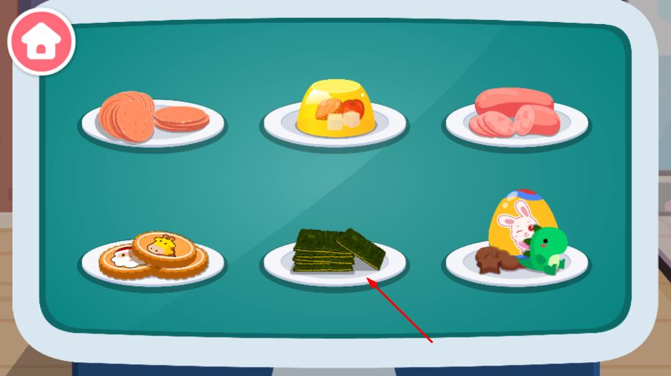 1、在美食选择界面,选择制作海苔,点击食材,进入制作环节。