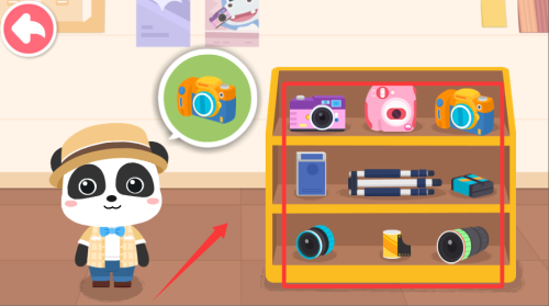 1、初次游戏先带孩子认识基础摄影工具,从相机、闪光灯开始了解。