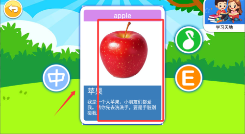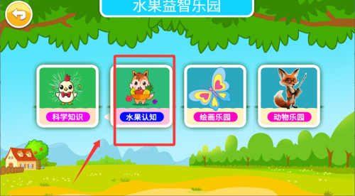 1、进入游戏后先让孩子熟悉各种水果的外形和名称,屏幕上会显示水果名称提示,帮助宝宝建立初步认知。