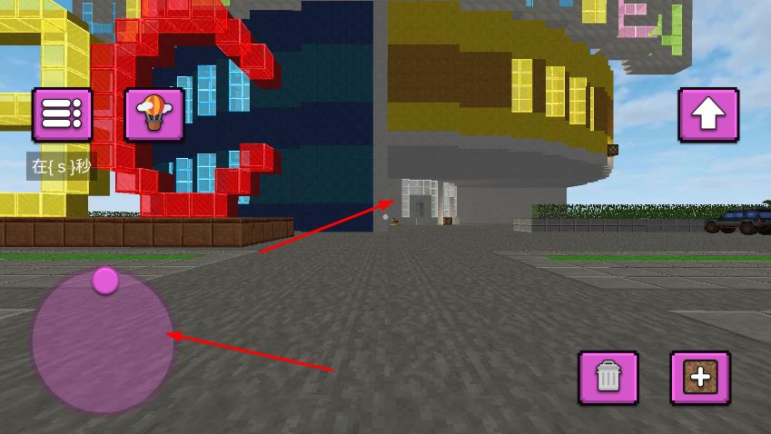 3、进行建造操作,右下角有+按钮,点击该按钮可以选择建造的方块或物品,然后在场景中点击相应位置,放置方块进行建造,搭建各种建筑和场景。