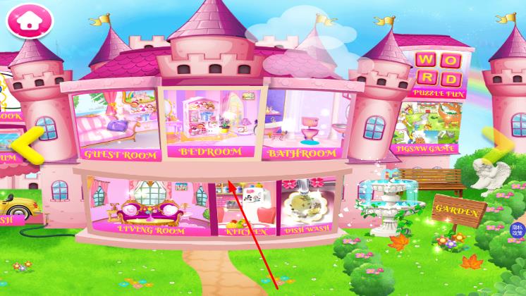 1、进入界面,在城堡场景选择要清洁的房间,进入脏乱房间界面。
