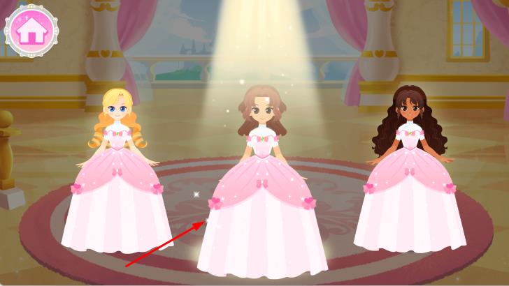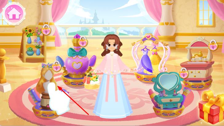 3、点击场景中可以解锁的的道具,对公主的发型、配饰等进行进一步调整,帮助公主展现出最佳形象。