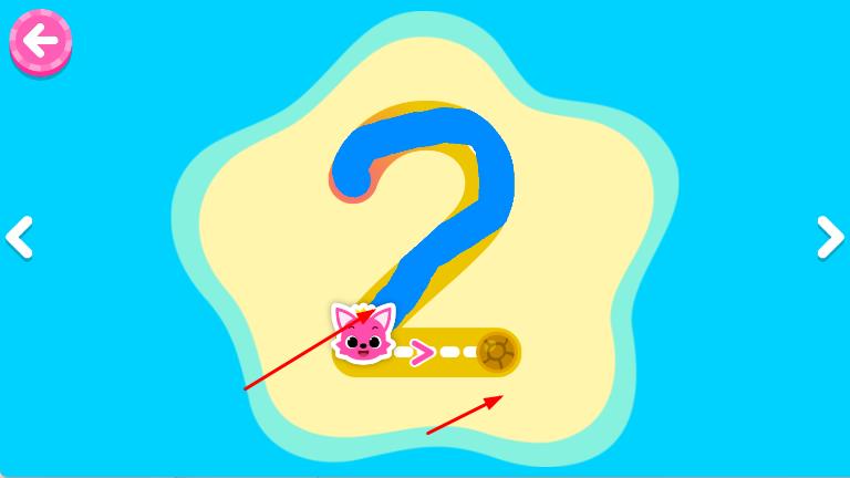 2、在具体的学习场景中,数字绘画环节,会出现数字,按照箭头指引,沿着线条用手指或触控笔进行描绘,认识数字的形状。