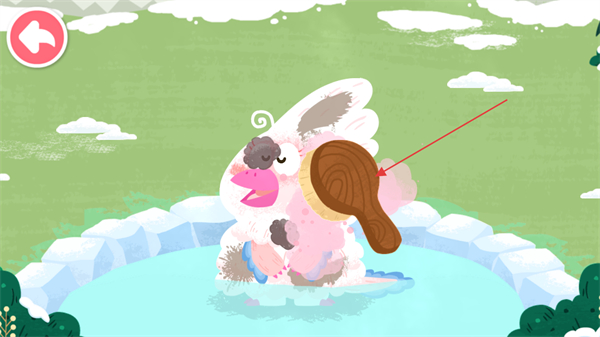 3、操控角色进入水池场景,使用工具如刷子进行清洁互动。