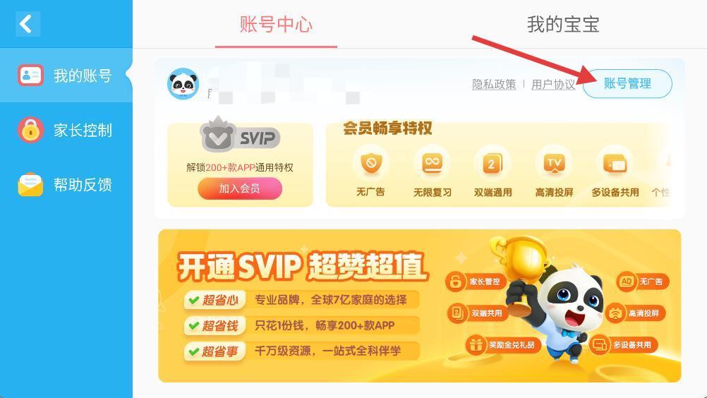 1、点击主界面右上角家长中心图标。