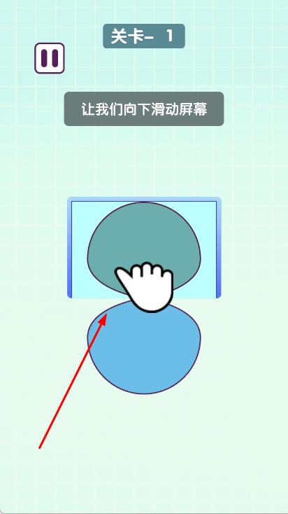 2、在关卡中,中间有一个图形,根据提示让我们向下滑动屏幕和让我们向右滑动屏幕进行学习,通过滑动屏幕来操控图形的移动。