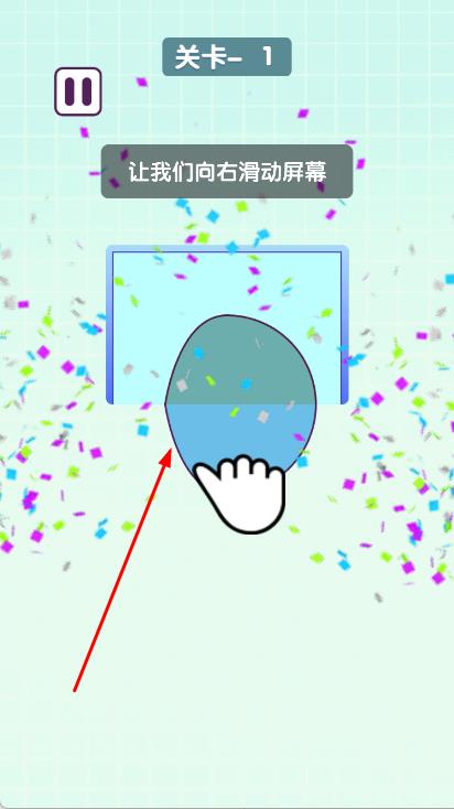 3、滑动屏幕时,图形会按照指示方向移动,当两个半圆图形拼接在一起,形成完整的图形时,表示关卡完成。