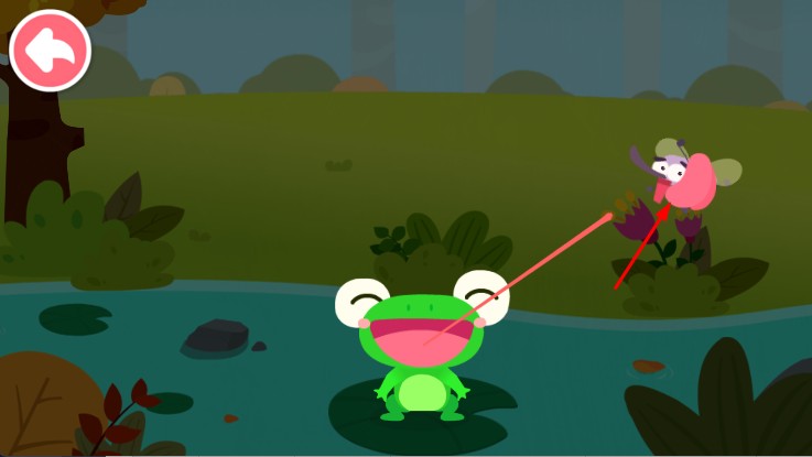 2、在互动关卡,如青蛙捕食 ,按提示操作帮青蛙捕捉昆虫,完成小任务学习动物知识,推进冒险进程。