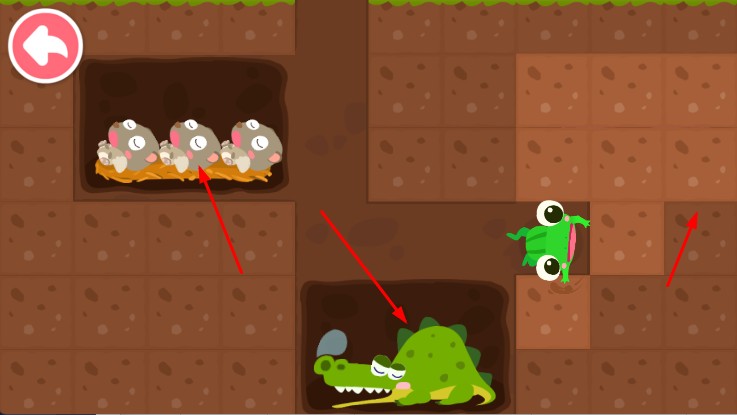 3、解锁地下迷宫新场景后,规划移动路径避开危险,如鳄鱼 ,解救动物。