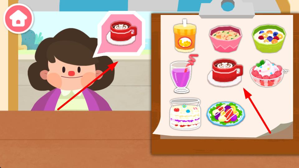 1、游戏开始后观察她头上气泡标识的食物,然后在右侧菜单板里找到对应的食物图标,点击图标即可选择顾客所需食物。