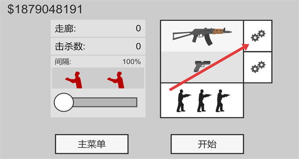 1、在像素射击世界游戏中,选择“走廊”游戏模式,点击开始游戏进入游戏准备界面。