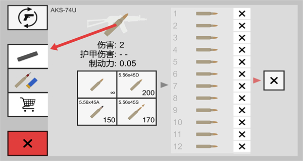 3、在武器设置界面,点击左侧的消音器图标,进入消音器选择界面。