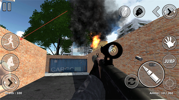 4、点击弹药图标进行射击,需关注弹药数量,及时换弹;还可使用手雷等道具辅助战斗,提升作战效率。