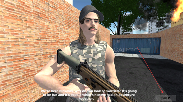 2、游戏中有剧情对话环节,右下角SKIP按钮可跳过剧情,快速进入战斗阶段,节省时间。