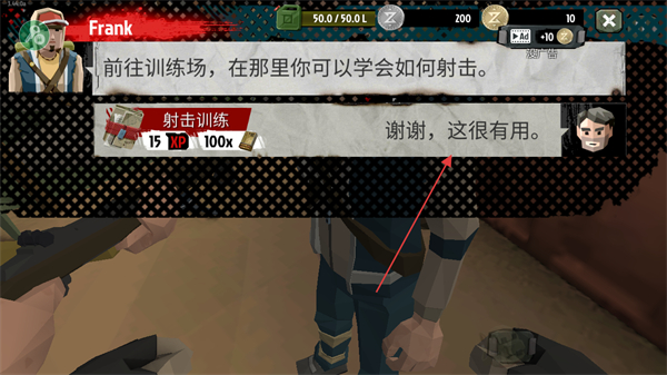 2、与Frank对话,接受射击训练任务,获取任务奖励提示。