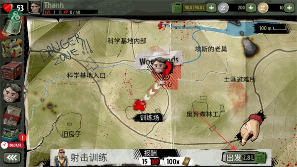 3、打开地图,查看训练场位置,点击出发前往训练场。