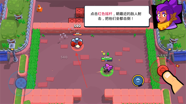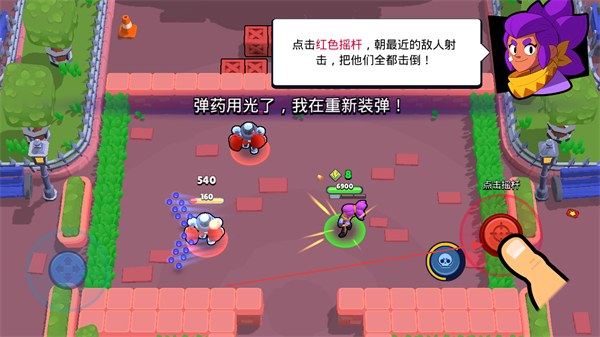 2、点击红色摇杆,朝最近的敌人射击,击倒敌人获取奖励,注意弹药耗尽后需重新装弹。