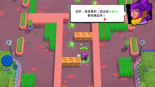 1、操控角色收集绿色能量块,积累资源,提升角色能力。
