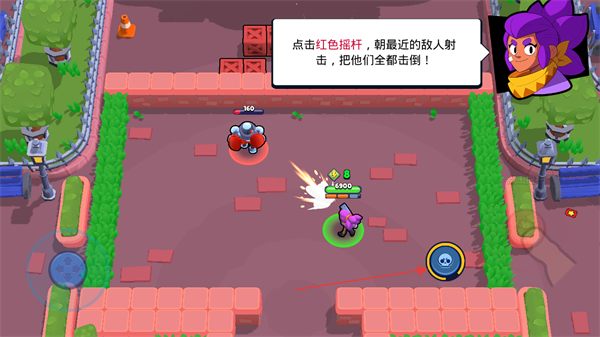 3、持续使用红色摇杆射击敌人,击倒所有敌人,完成战斗任务。