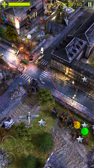 3、继续打击敌方目标,收集场景中的星星和道具,提升分数。