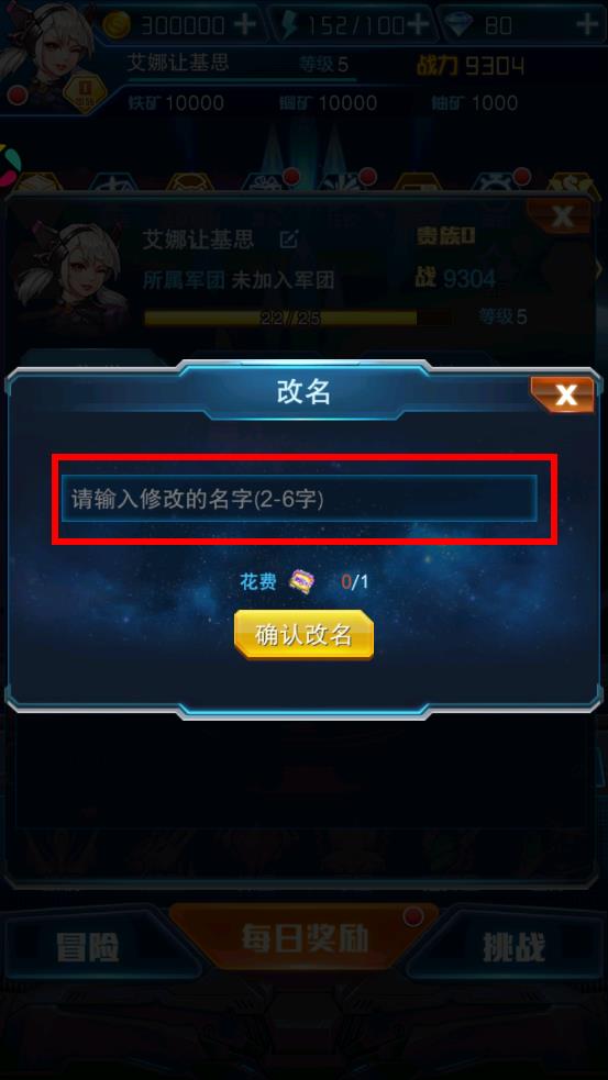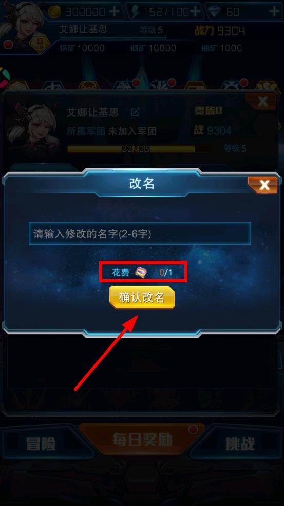 4、确认名字输入无误后,查看改名所需花费道具数量,确保拥有足够数量道具,点击确认改名按钮完成改名操作。
