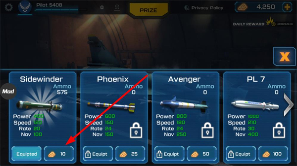 4、点击下方的购买按钮,即可完成导弹购买,提升战机的空战能力。