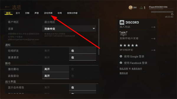 2、在选项界面的顶部标签栏中,选择游戏手柄选项,进入手柄按键的配置页面。