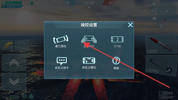 1、点击操控设置选择虚拟摇杆操控方式方便控制飞机飞行方向。