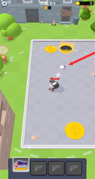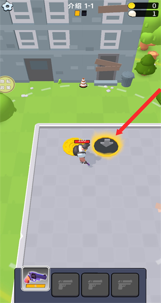 2、在关卡中操控角色移动,朝着箭头指向的道具如白色骷髅前进,靠近后拾取道具,为后续狩猎丧尸做准备。