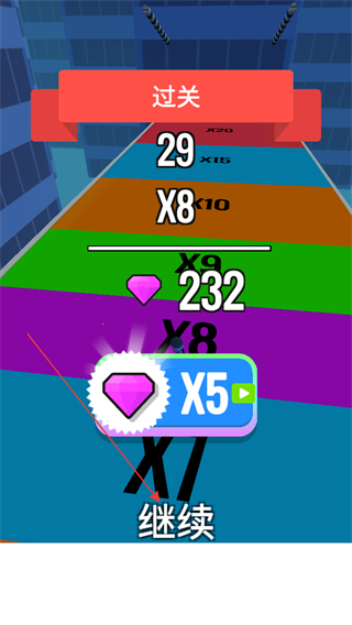 3、在倍数跑道上保持角色移动,尽可能多的触发高倍数区域,提升分数。