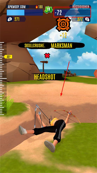 3、成功命中对手头部触发HEADSHOT,对手生命值减少72,自身获得12点奖励,对手倒地显示被击败状态。