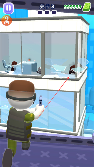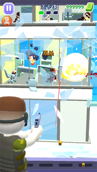 2、射击时注意玻璃的破碎效果,利用玻璃破碎后的视野,继续消灭隐藏的敌人。
