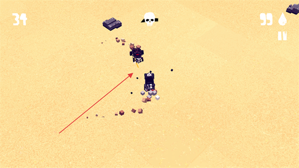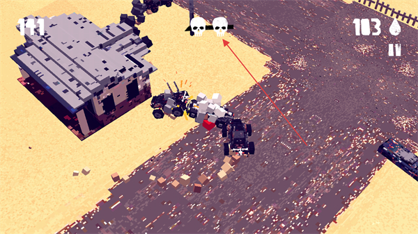 1、操控车辆在沙漠中行驶,攻击敌方车辆,收集资源,注意右上角的水滴资源代表生存资源。