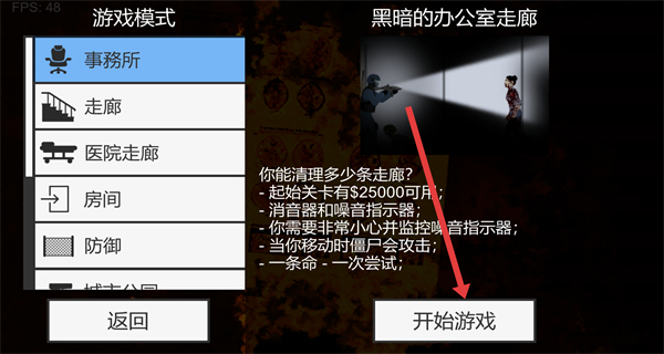 1、在进入到游戏模式选择页面中,点击选择第一个模式后点击开始游戏。