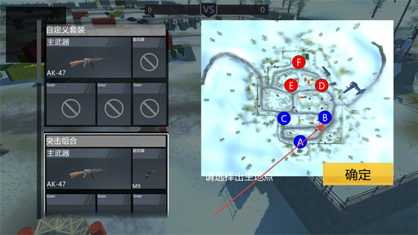 1、选择出生地点如A、B、C等点,确定后进入战场。