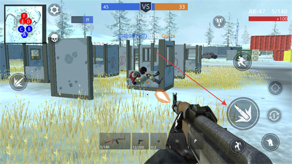 4、可使用武器技能如枪械的特殊攻击按钮增强火力,持续消灭敌人,助力队伍赢得对战。