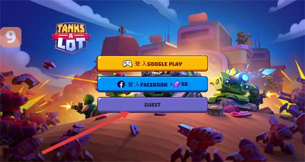 1、在游戏登录界面,点击“GUEST”按钮,以游客身份进入坦克对战的游戏玩法。