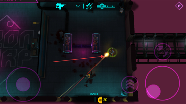 3、在不同场景中移动,攻击敌人,不断消灭敌人以获取更高分数和武器升级。