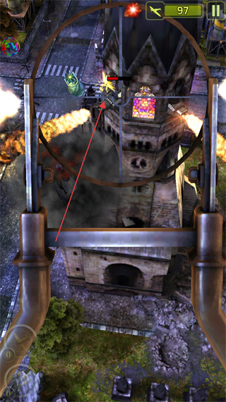 2、调整瞄准方向,持续打击目标,推进战斗进度。
