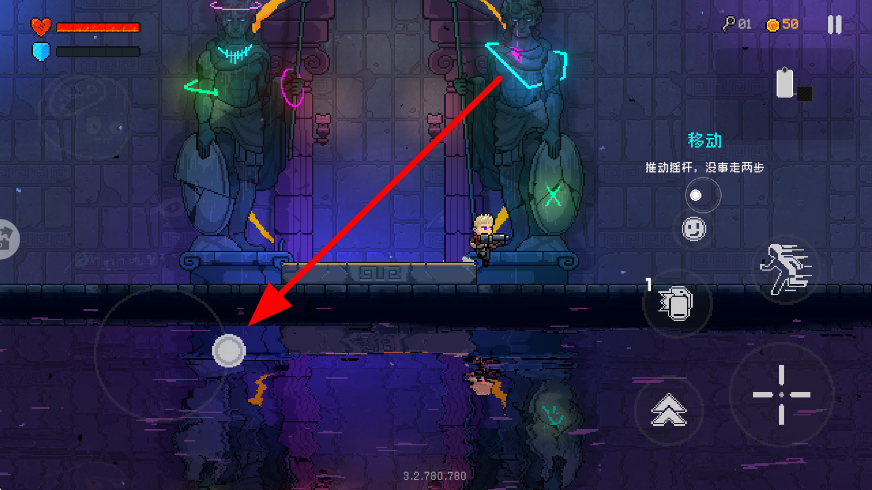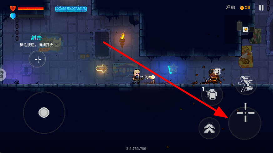2、战斗中屏幕右侧有射击相关的操作按键,按住按键,可让角色持续开火,应对遇到的敌人,保障自身安全并推进冒险。